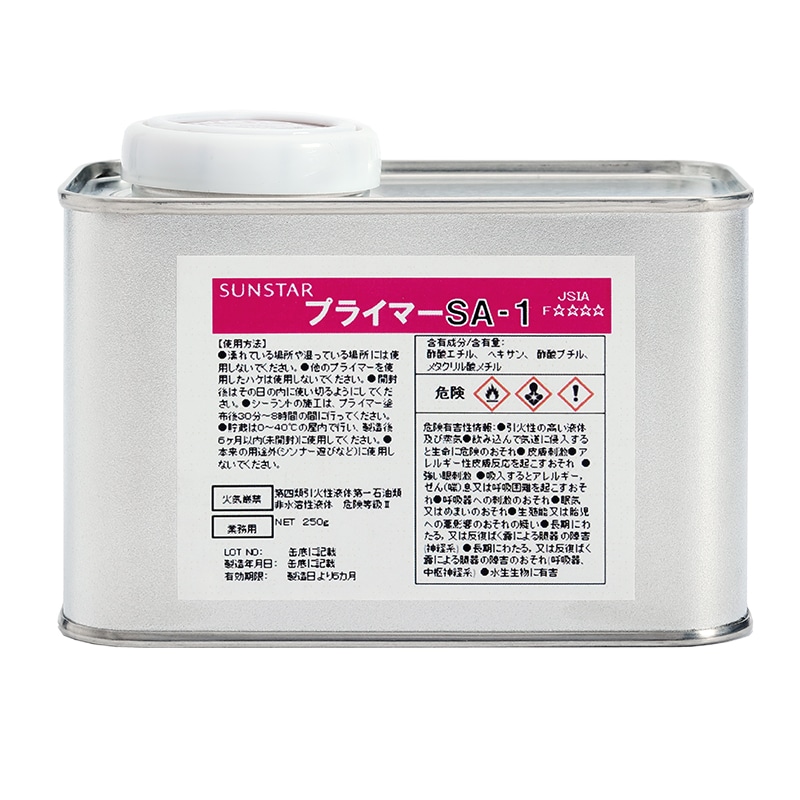 ※プライマーを必ずご使用ください。 ・ガラス、金属、金属塗装面:SA-1、SS-2 ・金属、金属塗装面、コンクリート、モルタル、タイル:UM-2 ・2成分形シリコーン系シーリング材、2成分形ポリイソブチレン系シーリング材との打継面:SA-1、RS-2