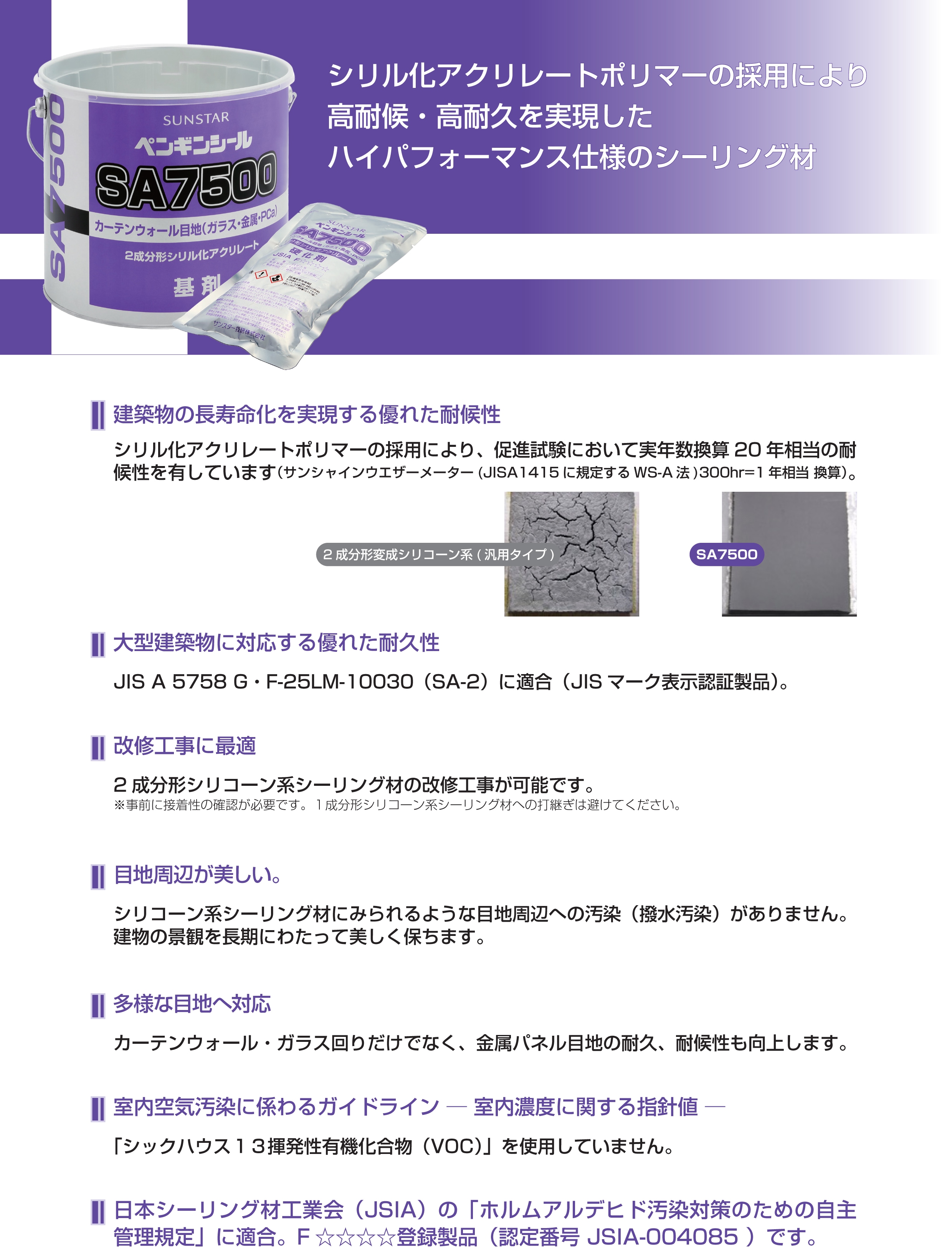 ◆主用途◆●ガラス・サッシ回り目地●金属カーテンウォール、パネル目地●PCa板間目地●金属笠木目地