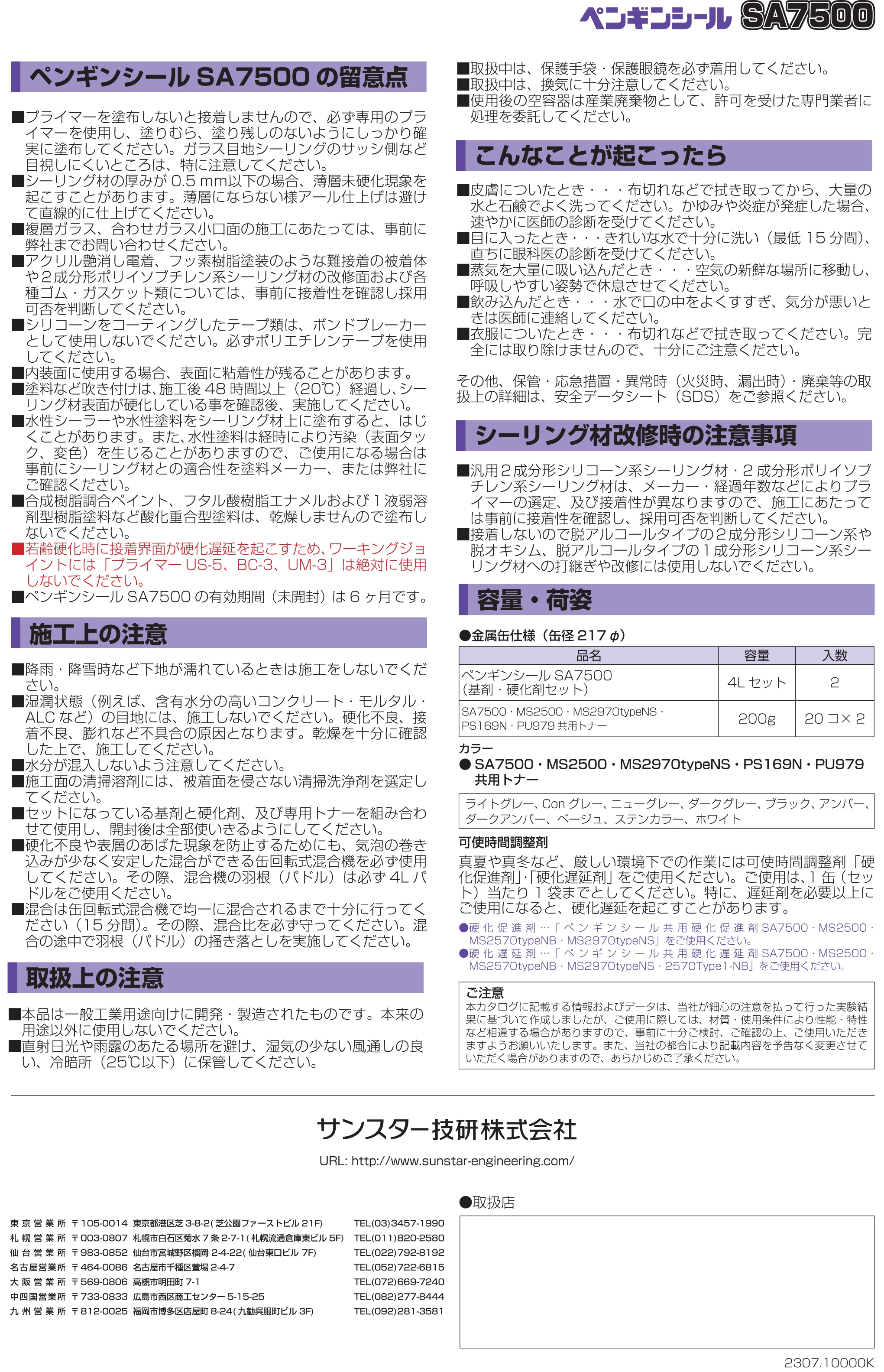 サンスター技研 ペンギンシールSA7500 4L×2セット2成分形シリル化アクリレート